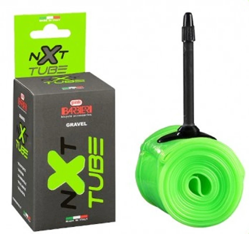 Barbieri NXT est une chambre à air de vélo extra-légère en polyuréthane thermoplastique qui réduit de manière significative le poids de la masse en rotation par rapport à une chambre à air classique en butyle tout en offrant une protection décente contre les crevaisons.