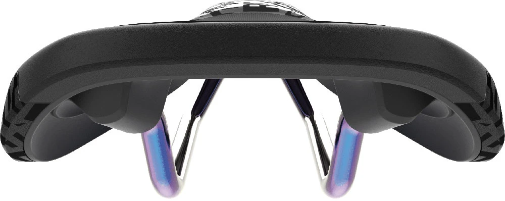 - ÉLÉGANT ET UNIQUE – Le design de la surface est adapté à l’orientation inclinée d’une selle de descente. « Always downhill » est la devise ici – pour contrôler dans les terrains raides et techniques et dans les airs.